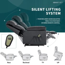 - 【HUMANIZED DESIGN】The powerful silent single motor design enables the lift chairs recliners for elderly to be adjusting to any position smoothly, it can lay back or tilt to stand which can help the elderly stand up easily. The wide armrests and comfortable headrest and backrest fit your body completely. In addition, this chair is equipped with a wireless remote control, which is more facilitates. The side pocket design provides a place for placing the remote control and other small objects.