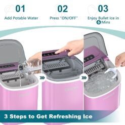 - User Friendly & Simple Operation: Euhomy ice maker adopts large see-through window visualized design, allowing viewing of the interior ice-making. Equipped with a 170w upgraded compressor that 4kWh/24H energy consumption to save your electricity bills. And with a easy-to-operate controlable panel for faster operation in just two steps, adding water and press “ON/OFF”. Then our ice maker will provide you fresh bullet ice for you and your member timely.