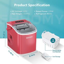 - User Friendly & Simple Operation: Euhomy ice maker adopts large see-through window visualized design, allowing viewing of the interior ice-making. Equipped with a 170w upgraded compressor that 4kWh/24H energy consumption to save your electricity bills. And with a easy-to-operate controlable panel for faster operation in just two steps, adding water and press “ON/OFF”. Then our ice maker will provide you fresh bullet ice for you and your member timely.
