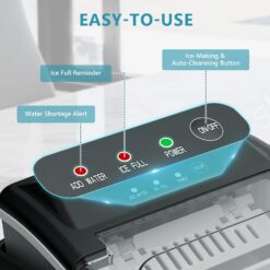 - Smart Operation & Self-Cleaning: The ice maker has advanced infrared sensor. The “ICE FULL” indicator flashes remind you to take out ice to prevent overflowing when the basket is full. And it’ll remind you to add water by flashing “ADD WATER”. Additionly, the compact ice maker has a one-touch auto-cleaning function. Press the “ON/OFF” for 5s after adding water to run automatic mode for 30mins. Not only are your hands-free but also you get a clean ice maker.