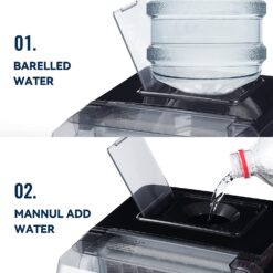 We provide bottled water supply method. You can choose to insert a bucket(Approx. 2Inches radius) above the sink lid to increase the ice making capacity. So you no longer need to worry about insufficient water in the ice maker’s sink.