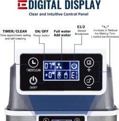- LCD & DIGITAL DISPLAY – Euhomy ice machine holds an LCD display which makes the ice machine easier to use. Features an easy-to-read push-button digital design for comfortable use. Timer with up to 8-hour delay. Offers on-time ice production. When there is not enough water in the water tank, the indicator will light up, reminding you to add more water. Or when the ice bucket is full, the ice maker will remind you to remove the extra ice cubes, so the ice maker can start to make more ice.