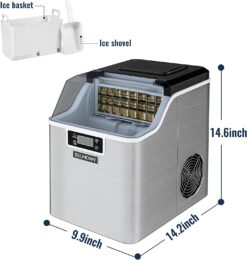- Food-Safe Material & Super Quiet – The material we use for the ice maker is Food-Safe and anti- corrosion. Therefore don’t be worry when you are using the countertop ice maker. Around 45db sound level won’t disturb you even the cat.