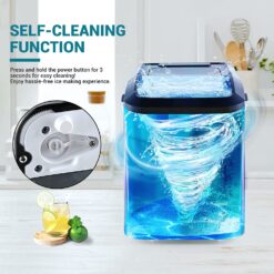 - SUPER ICE-MAKING CAPACITY – Euhomy’s counter ice maker machine is equipped with a highly efficient compressor, which is not only excellent in refrigeration, but also does not make too much noise during ice-making. All this allows you to enjoy ice cubes and drinks in a quiet environment. Not only the characteristics of the ice cube machine compressor make the ice maker consume little energy, but the tabletop ice maker machine has a recirculating water tank, which will not cause water waste.
