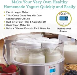 - CREATE NATURAL YOGURT ON YOUR OWN: This Euro Cuisine YMX650 Digital Automatic Yogurt Maker works on your counter-top to transform milk into regular yogurt in just a few hours. It includes 7 reusable 6 oz. glass jars with rotary date setting lids for hassle-free storage.