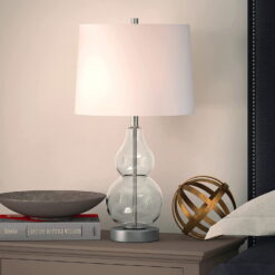 Evelyn&Zoe 21″ Table Lamp with White Drum Linen Shade
