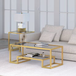 Evelyn&Zoe Contemporary Coffee Table with Glass Top and Shelf, Gold