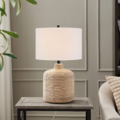 Evelyn&Zoe Jolina 20.5″ Petite Rattan Table Lamp with Fabric Shade