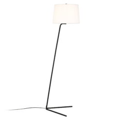This slightly arched floor lamp features a unique minimal metal base in brass, nickel, or blackened bronze finishes to match your current decor, and a clean white linen shade in a tapered drum shape. A modern piece of mid-century inspired design to add style in the corner of your living room, bedroom, or office.