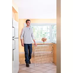 The Expansion Walk Thru Room Divider Gate helps parents keep their children safe from household dangers. This gate can be used in a variety of openings because it is extra-wide, but still has the ability to retract as it opens.
