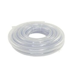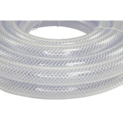 This braided vinyl tubing is made from polyester braided reinforced polyvinyl chloride and has the strength to withstand 4 times the working pressure of single wall PVC. The smooth, dense bore of the tubing maximizes flow rate and reduces sediment buildup. It has excellent resistance to acids, alkalis and many solvents, and handles a wide variety of chemicals, gases and liquids. It provides superior performance under severe operating conditions, and is excellent for hydraulic, pneumatic and vacuum lines.