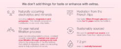 NATURAL HYDRATION: evian’s bottled water starts off nestled in the French Alps before delivering natural hydration and naturally occurring electrolytes. It’s a great way to rehydrate post-workout, or as a refreshing drink on your lunch break or commute. - OUR NATURAL SPRING WATER has a balanced mineral composition and naturally occurring electrolytes that give it a distinctive, smooth taste, unique among bottled waters. It’s the perfect rehydrating beverage, delicious either cold or at room temperature.Does Not Contain Any of the 8 Major Allergens