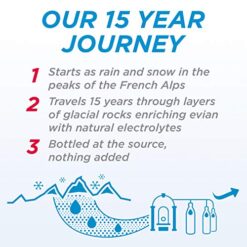 - NATURAL HYDRATION: evian’s bottled water starts off nestled in the French Alps before delivering natural hydration and naturally occurring electrolytes. It’s a great way to rehydrate post-workout, or as a refreshing drink on your lunch break or commute.