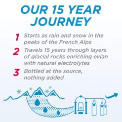 - CRAFTED BY NATURE: evian natural spring water begins as snowflakes and mountain rain, naturally filtered through glacial rocks for over 15 years, giving evian its purity, mineral content and neutrally balanced 7.2 pH for delicious natural spring water.