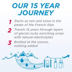 - CRAFTED BY NATURE: Evian natural spring water begins as snowflakes and mountain rain, naturally filtered through glacial rocks for over 15 years, giving evian its purity, mineral content and neutrally balanced 7.2 pH for delicious natural spring water.