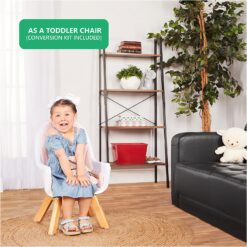 - EASY TO CLEAN: Don’t worry about cleaning up any post-meal mess! The seat cover is removable and extremely easy to clean after a messy meal! Wash with warm soapy water and you are good to go. Easily converts in to toddler chair. (Conversion kit included)