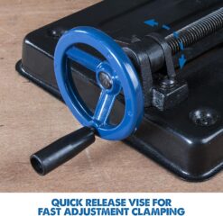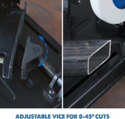 - The quick-release adjustable vise allows for fast and accurate angle cuts from 0-45Ëš