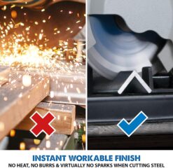 - The EVOSAW185 easily cuts mild steel without heat or burrs and virtually no spark