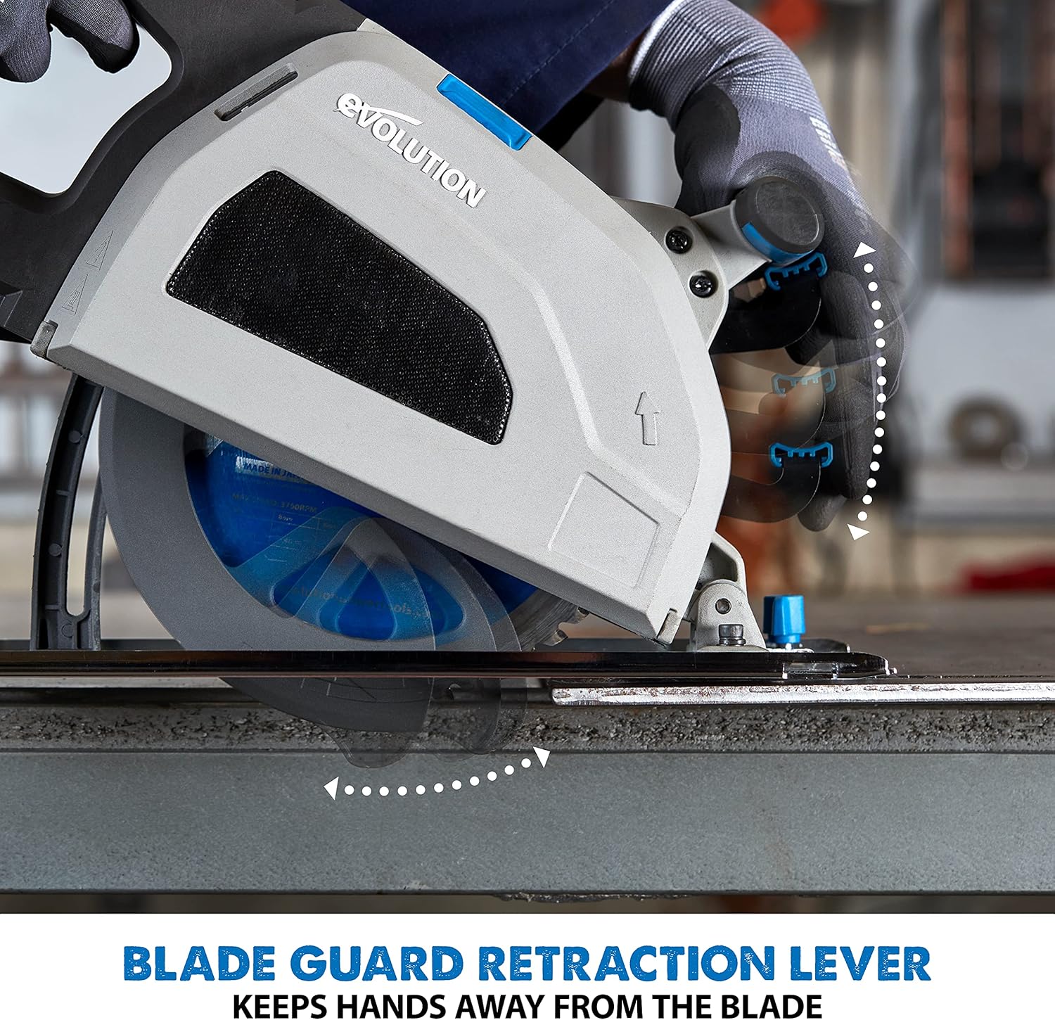 - The Evolution S210CCS circular saw includes an LED worklight which illuminates the cutting path, resulting in a more accurate finish.