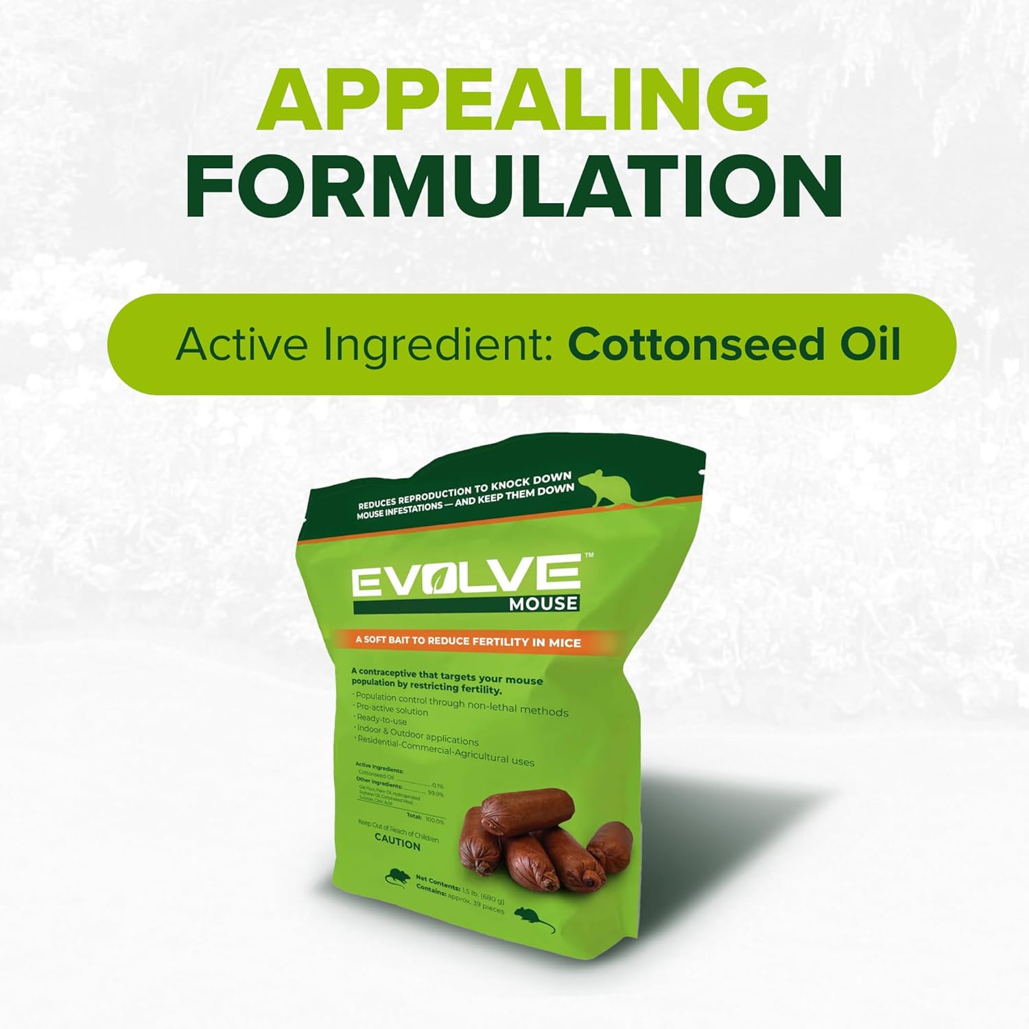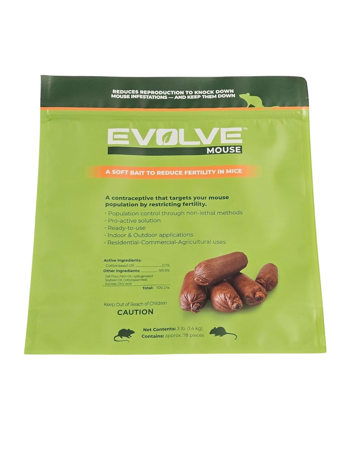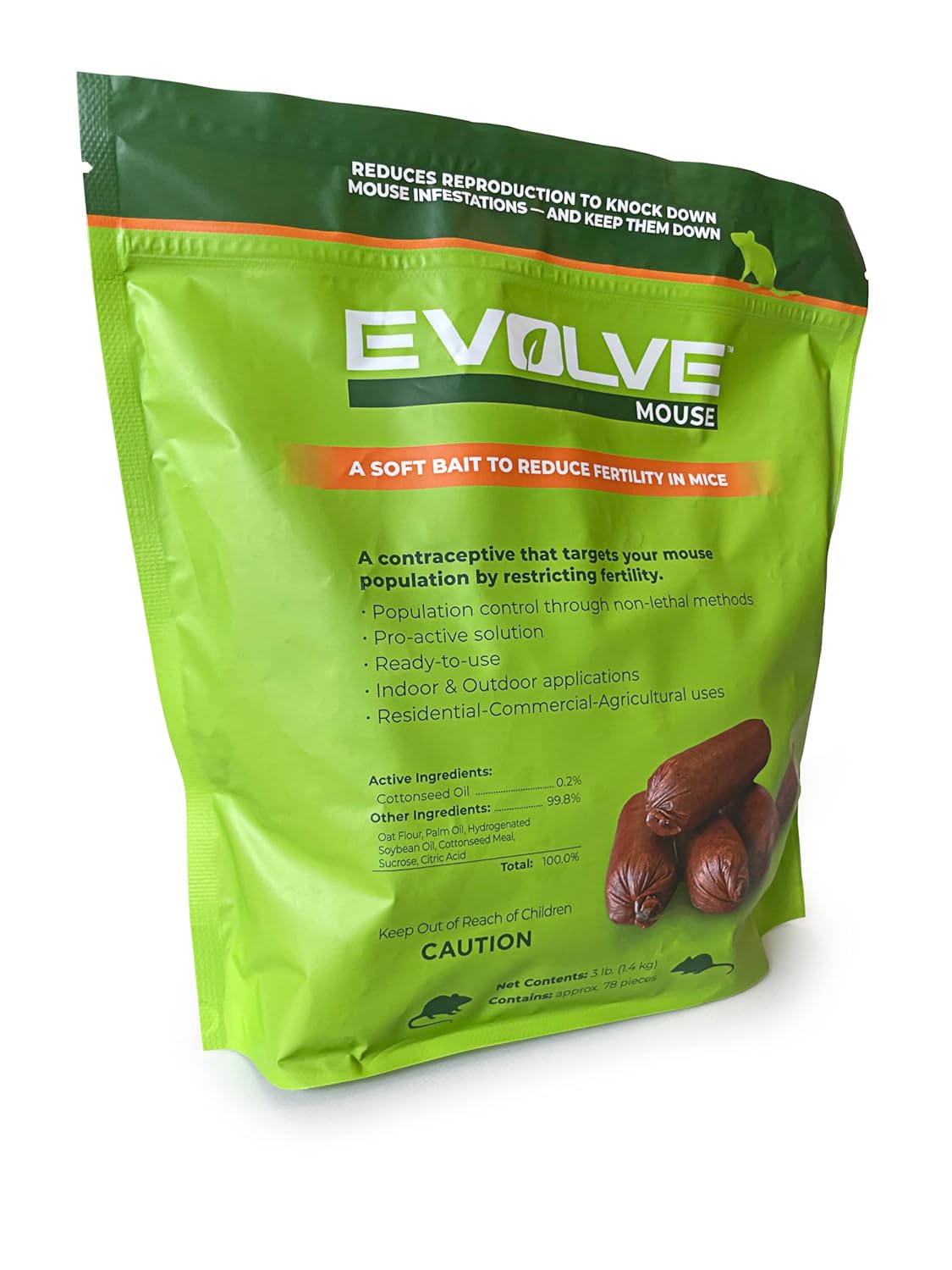 - OPTIMAL SOLUTION: Cottonseed Oil is the main ingredient used to limit the fertility in rodents, resulting in a decrease in population; Evolve targets both male and female rodents for comprehensive control without hurting them