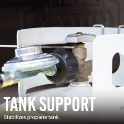 - Two fixed side shelves offer ample space for grill tools and food prep.