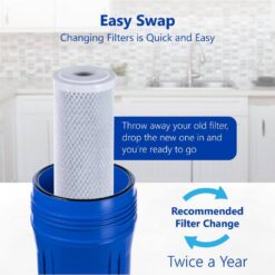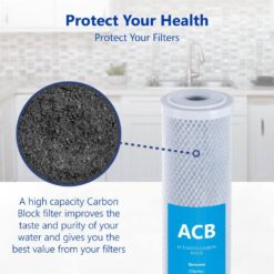 - Universal Standard Size Water Filters: Take the guessing out of replacing your water filters. Express Water’s 5 Micron Big Blue Activated Carbon Block (ACB) Filter, 2.5″ x 20″ size fits all standard 2.5″ x 20″ whole home water filter system housings