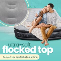 - DOUBLE-HIGH – This double-high 16″ blow up mattress has a premium, ultra-soft flocked top for non-slip stability wherever you rest your head. Coil beam technology provides real-mattress comfort and support.