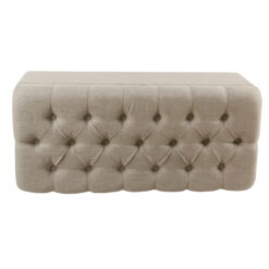Features: It consists of one storage bench only Features padded seat with button tufted details and hinged opening Made from durable wood and plywood materials; features polyester upholstery. Overall Dimensions: 18 inches in Length x 40 inches in Width x 18 inches in Height It adds essential storage space to areas around your home and supported on tapered feet.