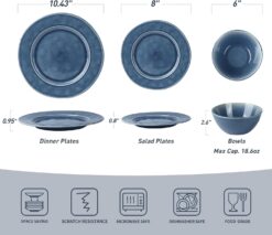 - 【12 Piece Dinnerware Sets】This dinnerware sets includes four 10.43″ dinner plates, four 8″ salad plates and four 6″ cereal bowls. This dish set served as a great combination for family kitchen set, has a great coordination with daily foods such as steaks, salads, desserts and so on.