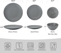 - [SERVICE FOR 4]: The dinnerware set includes (4)10.5-inch dinner plates, (4) 8.0-inch salad/appetizer plates, and (4) 6-inch 22oz bowls,which designed for versatile use in serving everyday meals with efficiency and style.