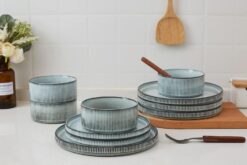 Famiware Star Dinnerware Sets, Plates and Bowls Set For 4, 12 Piece Dish Set, Smoky Blue