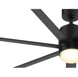 The Blitz 56 inch ceiling fan is perfect for any large indoor room or covered outdoor application. This fan features a matte black finish with 7 black blades, making it ideal for any style of home décor. It includes an 18-Watt LED light kit with frosted glass shade, allowing overhead illumination to your space. With a 16-speed DC motor and reverse airflow feature, this ceiling fan is easy to use and provides optimal comfort all year-round. This model also includes a remote control so you can operate the fan from anywhere in the room.