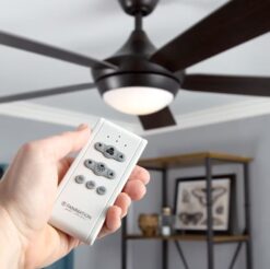 - CONTROL: Includes a TR500S hand-held remote control with one 12V 23A battery – Push button remote controls 3 fan speeds, infinite light levels and powering fan off