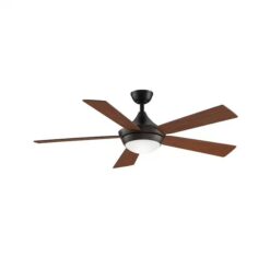 Modern style meets performance with the Fanimation Studio Collection 52 inch Aire Drop Ceiling Fan. Featuring a timeless aged bronze finish with five reversible blades offering either Cherry or Dark Walnut, this elegant ceiling fan is the perfect accent to any room. An 18-watt LED light kit with frosted glass shade provides overhead illumination. Three speeds allow you to customize airflow, while the reverse air flow feature allows you to change the direction of the fan seasonally for increased efficiency. This fan comes with a hand-held remote control that gives you complete control of your lighting and fan speeds from anywhere in the room.
