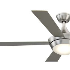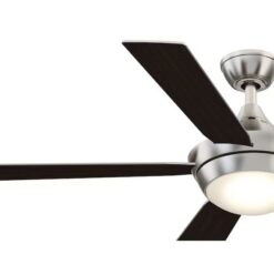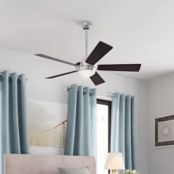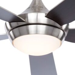 Modern style meets performance with the Fanimation Studio Collection 52 inch AireDrop ceiling fan. Featuring a timeless brushed nickel finish with five reversible blades offering either gray or dark walnut, this elegant ceiling fan is the perfect accent to any room. An 18-watt LED light kit with frosted glass shade provides overhead illumination. Three speeds allow you to customize airflow, while the reverse air flow feature allows you to change the direction of the fan seasonally for increased efficiency. This fan comes with a hand-held remote control that gives you complete control of your lighting and fan speeds from anywhere in the room.