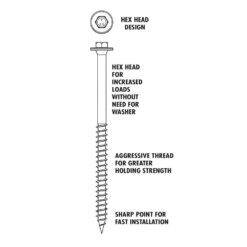 FastenMaster FMLL005-50 LedgerLOK Structural Ledger Board Screws – 5 inch wood screws with hex head – Gray (50 Pack)
