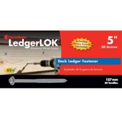 FastenMaster LedgerLOK is the first wood screw engineered to fasten a deck ledger board to the rim joist of a house with no predrilling. The built-in washer head eliminates the need for an additional washer, saving time and money. The large hex-head allows for greater bit engagement, reducing cam-out.LedgerLOK replaces traditional 1/2 inch lag bolts, installing in a fraction of the time, and leaving you with a code-compliant, secure ledger to rim board connection. LedgerLOK is guaranteed to last for the life of the project.Refer to the LedgerLOK technical bulletin (included in each box) to determine the fastening pattern for your specific application.Includes 50, 5 inch ledger board screws, and 1 hex driver bit.Since 2003, thousands of PROs have trusted LedgerLOK to make ledger to rim board connections – its reliability and easy of use make it a staple on jobsites everywhere.