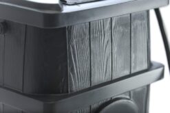 - The barrels are constructed of recycled, UV-inhibited, BPA-free polyethylene. Assembled Dimensions: 16″D x 22″W x 32″H