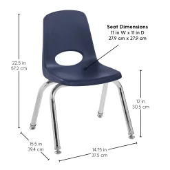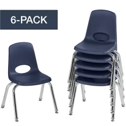 FDP 12″ School Stack Chair, Stacking Student Seat with Chromed Steel Legs and Ball Glides; for in-Home Learning or Classroom – Navy (6-Pack), 10359-NV