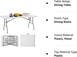 FDW Folding Tables, Plastic 6ft Folding Table,Half Portable Foldable Table for Parties, Backyard Events,White