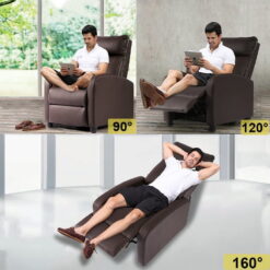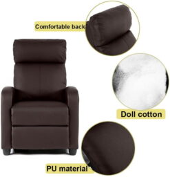 Humanization Design – Enjoy your favorite entertainment and fully relax your body and mood this comfortable recliner chair. Double Comfort – Push-back recliner design with adjustable footrest, wider armrests with curved shape, larger-size seat cushion, thicker recliner back. Waterproof and easy to clean – Chair is upholstered by a durable and comfortable bonded leather material, when water spills onto the seat, it is very waterproof and clean. Upgraded footrest – Enjoy the full ottoman for extra leg support, which lets you stretch out your legs. Easy to assemble – Back rest slides into place. It’s ideal for placement in a cozy living room seating group, a bedroom, rec room or den. This attractive recliner has a sturdy frame covered with an easy-to-maintain. It has thick padding and wide arms. This piece gives you a suitable place for relaxation extending backward with the simple side lever. It offers a contemporary feel that fits your body and features close proximity to wall recline for added enjoyment. The included full-size ottoman provides lasting support for your legs and tired feet, allowing you to extend, helping you to relax. Place it in front of your flat panel TV or along the side your bed, kick back and unwind from the day’s events.