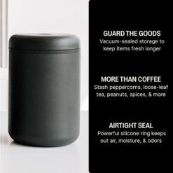 Fellow Atmos Vacuum Coffee Canister & Food Storage Container – 1.2 Liter Canister holds up to 16 oz of Coffee Beans – Airtight Food Storage Containers – Coffee Containers – 1.2 Liter – Matte Black