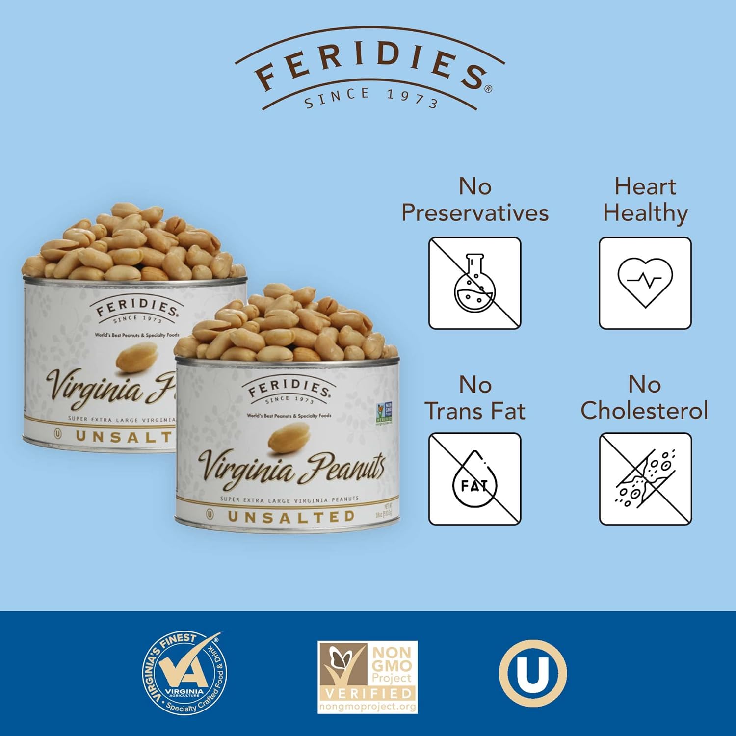 - SUPERIOR QUALITY – FERIDIES Virginia Peanuts are cooked in pure peanut oil and lightly salted to maintain the peanuts distinctive flavor and healthy qualities.