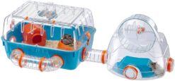 - This modular cage is designed so you can interact with your hamster more often, with a separate living and play area, connected by a clear play tube.