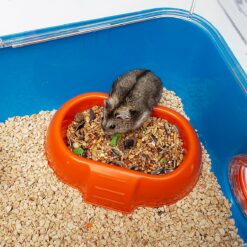 The habitat is complete with everything your hamster needs: one feeding bowl, one water bottle (capacity 0.0.3 gal), one house for relaxation and one wheel, a necessary element preventing the rodent from getting bored, keeping him always active and in good health. Two convenient ledges you will fix to the cage mesh allow creating some relaxation zones for your new friend.