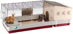 Give your furry friend extra space and comfort with the Ferplast Krolik 140 Rabbit Cage and Wood Hutch. This extra-extra-large cage makes for a spacious home for your rabbit, guinea pig or chinchilla. All of the accessories you need for your pal’s home are included, like a hay feeder, large water bottle and a feeding bowl. An elevated feeding area and detachable plastic base help keep mealtimes clean and litter cleanups easy. Your little friend can also enjoy privacy and a nice place to nest with the wood hutch extension. And since it’s easy to assemble with no tools required, your pal’s new home can be ready to go in no time.