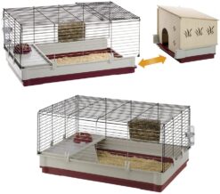 Ferplast Krolik Rabbit Cage | Extra-Large Rabbit Cage w/Wood or Wire Hutch | Rabbit Cage Includes All Accessories