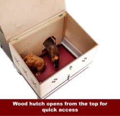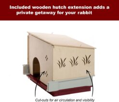- The wood hutch extension comes with a full top door equipped with a lock, as well as a private living and nesting space for your furry friend.