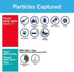 Opt for a Filtrete Allergen DefenseAir Filter to transform your central heating and cooling system into a whole-home air filtration operation. This no-nonsense filter helps capture varying sizes of particles, from the large lint, pollen, dust and pet dander to the microscopic smoke and smog.