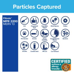 - 69% SMALL PARTICLE CAPTURE, like bacteria and particles that carry viruses* (* % captured is based on ASHRAE 52.2 testing for 0.3 to 1 micron particles from the air passing through the filter, which relates to HVAC industry standard efficiency testing)